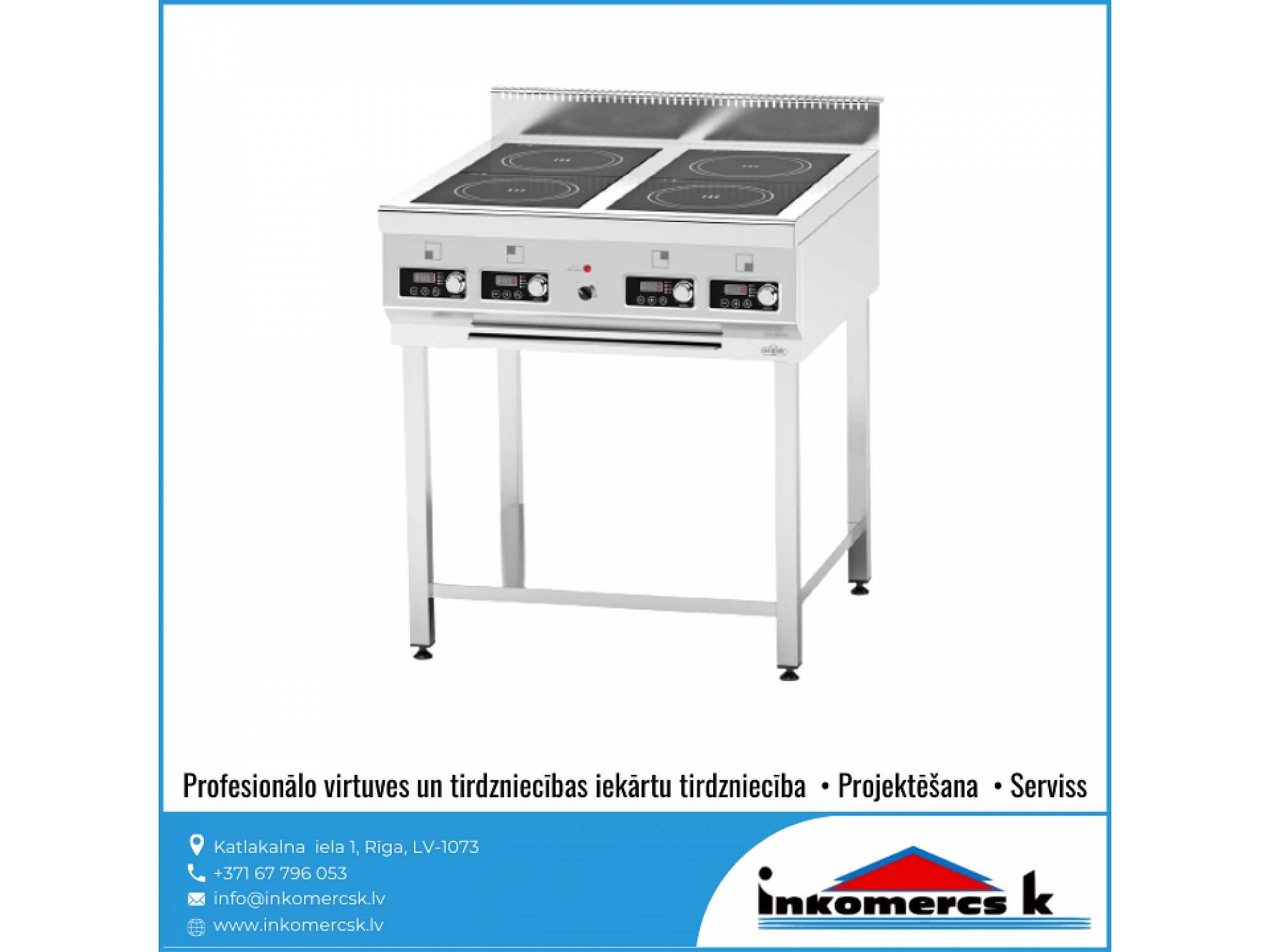 "Inkomercs K" piedāvā plašu profesionālās virtuves un tirdzniecības iekārtu sortimentu dažādās cenu kategorijās. Mums ir vairāk nekā 15 gadu pieredze, lai saviem klientiem piedāvātu labāko risinājumu. Mēs konsultējam, projektējam dažāda veida ēdināšanas iestāžu projektus - kafejnīcām, bāriem, ēdnīcām, veikaliem, lielveikaliem, viesnīcām, skolām, bērnudārziem un citiem. Kā arī nodarbojamies ar iekārtu tirdzniecību, montāžu un veicam iekārtu apkalpošanu un servisa darbus. Pie mums ir kvalitātes garantija.