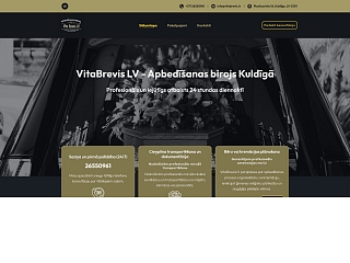 "Vita Brevis LV", SIA ir apbedīšanas birojs Kuldīgā ar vairāk nekā 30 gadu pieredzi, nodrošinot profesionālu un korektu apbedīšanas procesa organizēšanu. Uzņēmums veic mirušā transportēšanu, dokumentu noformēšanu, sagatavošanu izvadīšanai un kremācijas organizēšanu, strādājot ciešā sadarbībā ar medicīnas iestādēm un pašvaldību struktūrām. Diennakts pieejamība 24/7.